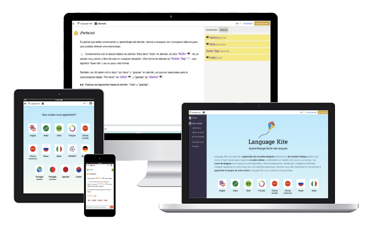 Language Kite makes it easy and fun to learn new languages thanks to our dynamic online classes. Learn at your own pace from the comfort of your home or your office, our language courses are always there for you. Our teaching, assisted by artificial intelligence, quickly adapts to your proficiency level and tailors the course materials to your current needs and goals. Sign up to start learning the language of your choice right now! Language Kite will keep you motivated every step of the way.